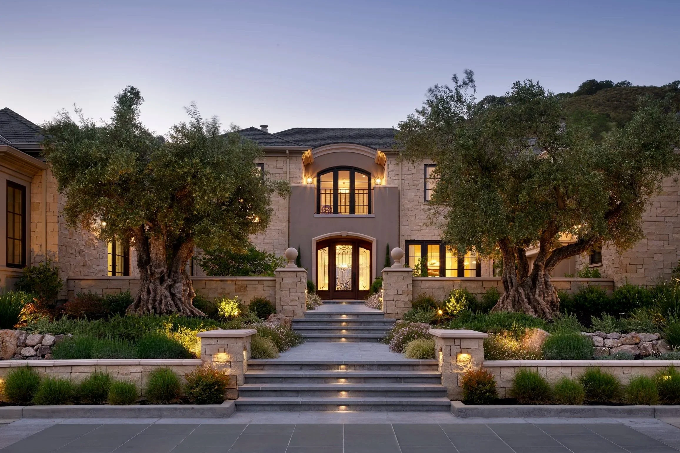 Nestled within ten acres between two rolling hillsides adorned with native oak trees, this splendid new 12,000-square-foot residence stands as a testament to harmonious design. Our stewardship over three years encompassed the meticulous orchestration of both interior architecture and design. We embarked on a journey to instill layers and depth, crafting bespoke wall and ceiling millwork that bestowed the spaces with tangible texture.